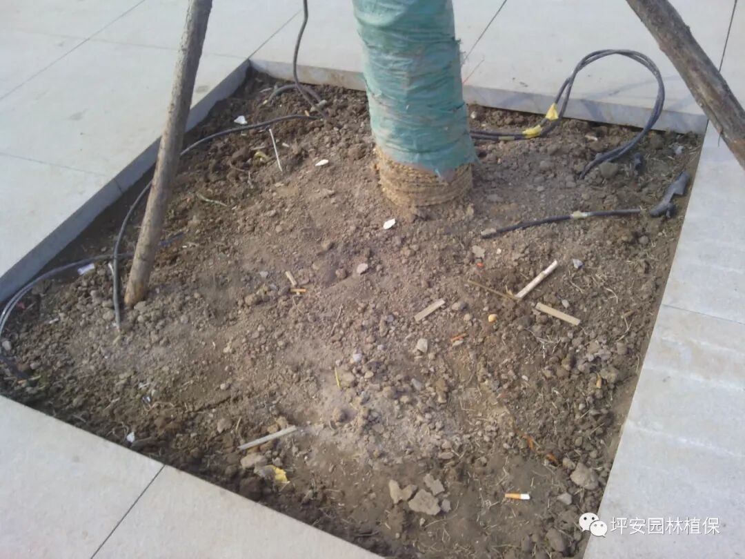 新移栽的樹木,根系生長環(huán)境決定根系是否能夠發(fā)出新根系,而能否發(fā)出新根系決定了樹木能否成活。在新移栽的土球上種植其他地被,或?qū)е峦寥劳笟庑圆缓?,同時(shí)還強(qiáng)占土壤中的營養(yǎng)。不同植物的需水情況不同,地被澆水頻率過高,或嚴(yán)重導(dǎo)致周邊土壤濕度過大——樹木根系的腐爛。