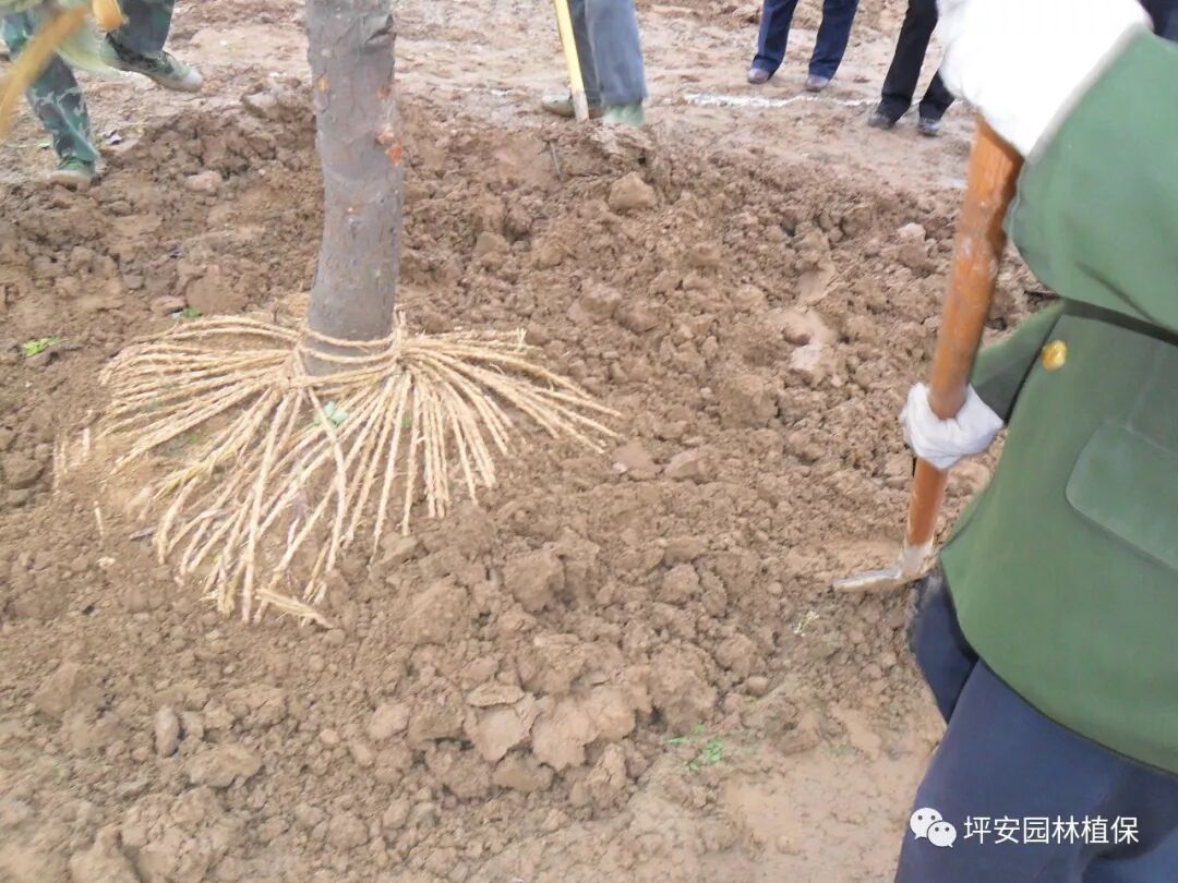 根系生長需要進(jìn)行呼吸作用,而根部覆土過深易導(dǎo)致根系呼吸困難。其次覆土過深也容易引起根部土壤水分過低(澆不透)或過高(澆透后水分散失慢),水分過低會(huì)引起樹體缺水死亡,水分過高也會(huì)引起根系腐爛,危及樹木成活。再次樹木根頸部是樹木對(duì)外界環(huán)境反應(yīng)最敏感的部位,外界溫度、濕度等季節(jié)變換都是通過其傳遞,如果覆土過深將會(huì)導(dǎo)致樹木對(duì)外界環(huán)境的變化反應(yīng)遲緩甚至受阻,樹體正常的生長受影響,嚴(yán)重的話還會(huì)危及樹木的成活。